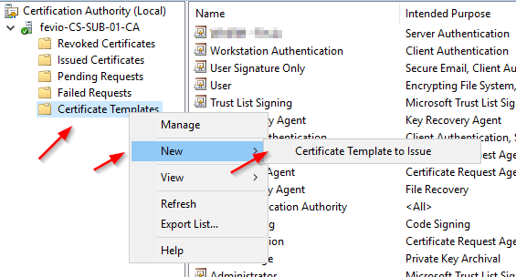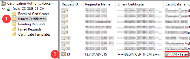 Configure your subordinate CA to delivers WinRM certificates