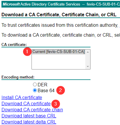 - Submit the CSR to the AD CS certsrv tool and get your certificate, base 64 encoded